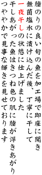 | ししゃも専門店 カネダイ大野商店 北海道勇払郡むかわ町美幸2-42 Tel 0145-42-2468 Fax 0145-42-4013 Mail info@kanedaioono.com Web http://kanedaioono.com カネダイ大野商店へのリンクは御自由にどうぞ |